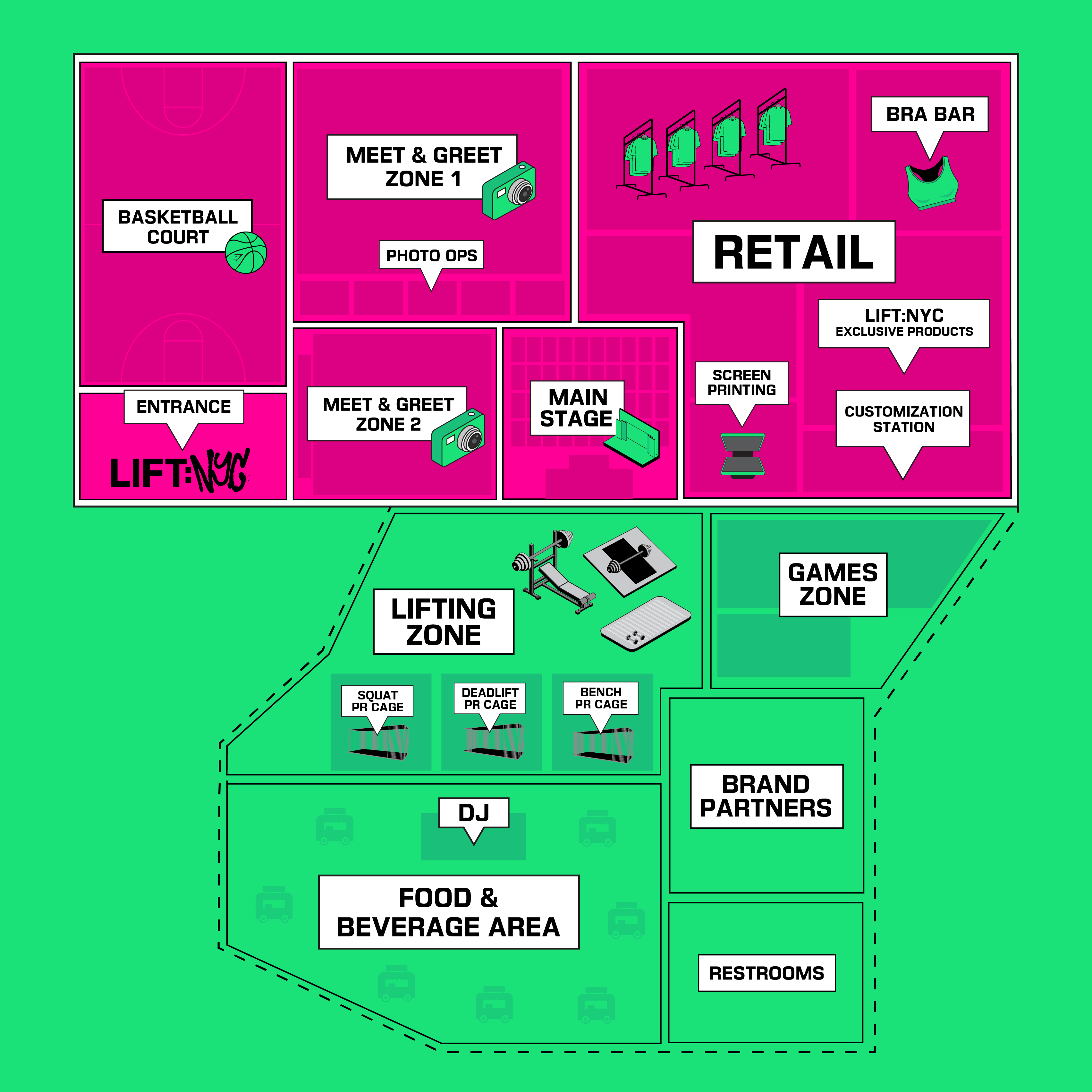 Designed to bring athletes of all disciplines together while allowing them enough space to (you know) do their own thing, #LiftNYC introduces a number of new exclusive zones to its event space.