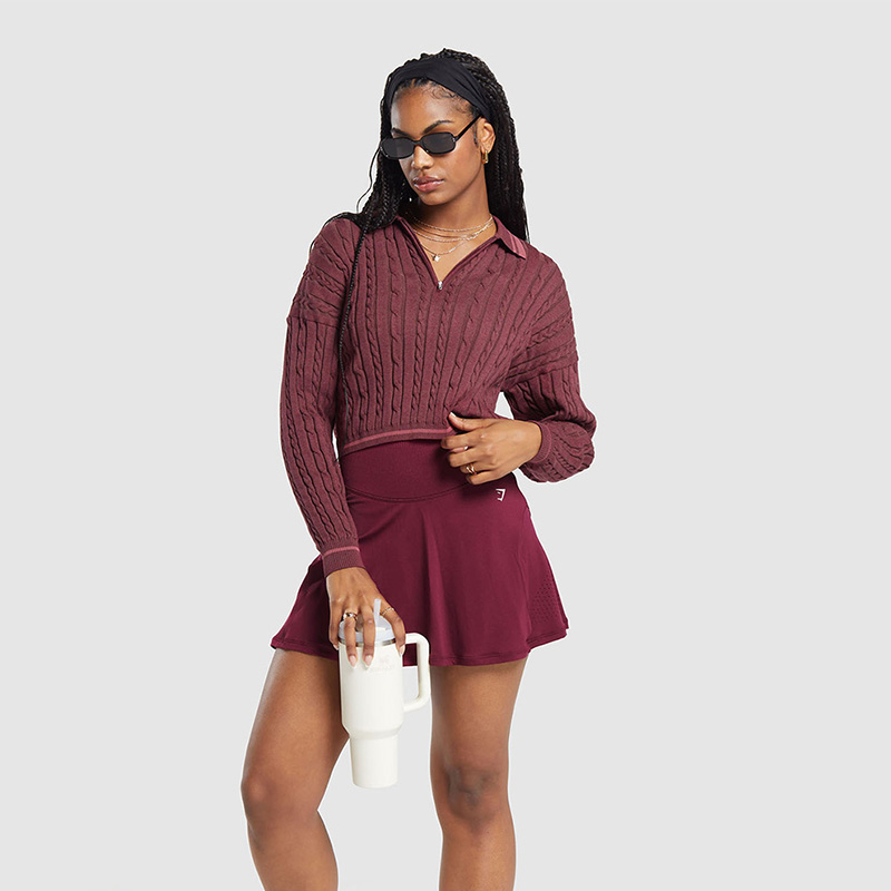 Sweat Seamless Skort + Cable Knit Pullover + Premium Combed Cotton Socks